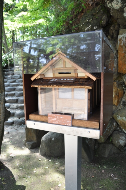 松雲山荘に設置された募金箱。庭園の整備、紅葉ライトアップ充実に活用する=松雲山荘内 (2011/06/04)