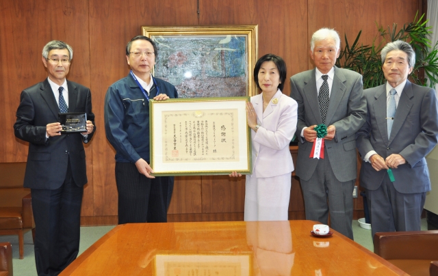 国交省の「みどりの愛護」功労者として大臣感謝状を受けた里山ネッ トの栗林会長ら (2011/05/25)
