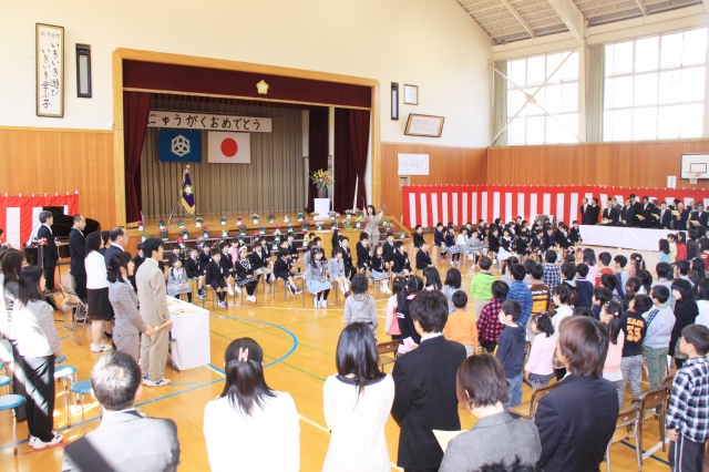 東日本大震災の避難児童を含め、新1年生を迎えた入学式=6日午前、剣野小 (2011/04/06)