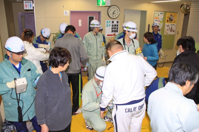 放射線被ばくの有無を調べるスクリーニングを受ける避難者=中央コミセン (2011/03/15)