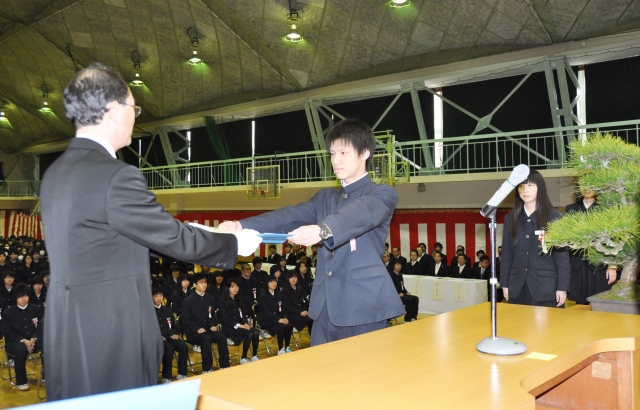 柏崎翔洋で行われた第3回卒業式。74人がそれぞれの進路へ巣立った=15日 (2011/03/16)