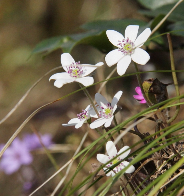 日の当たる所では遊歩道脇で開花が始まった雪割草=大崎雪割草の里 (2011/03/17)
