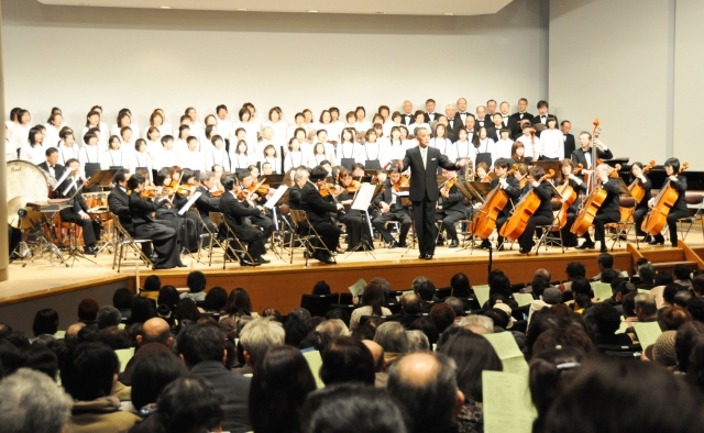 総勢170人が出演し、聴衆を感動で包んだ手作り演奏会「市民コンサート」=27日、産文文化ホール (2011/02/28)