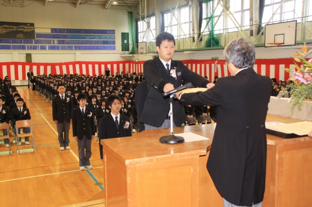 ケナフの証書が一人ひとりに手渡された東中の卒業式=7日 (2011/03/07)