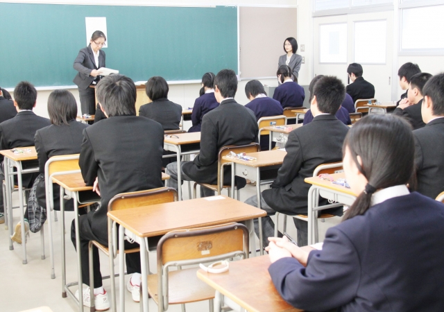 公立校入試。放送で受験上の注意を聞いた後、問題用紙などの配布を待つ受験生=柏高 (2011/03/09)