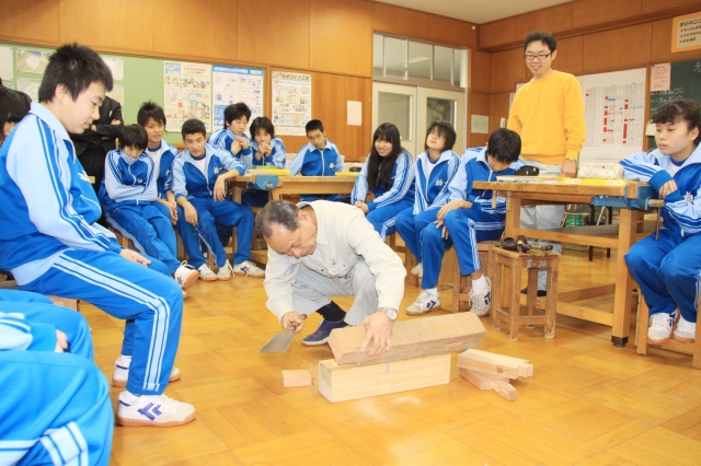 公開授業の一つ、技術のものづくりで匠(たくみ)の技に注目する生徒=一中 (2011/02/18)