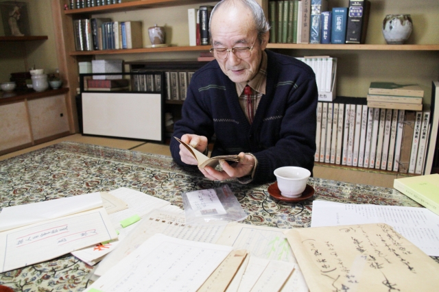 柏崎ゆかりの獄窓歌人・島秋人の手書き歌稿などを保管する柏崎歌会代表の松田秀明さん (2011/02/19)