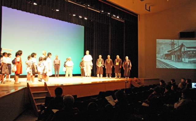 地域の歴史を演じた西中通コミセンの「ふしなり座」。熱演の舞台で演劇フェスティバルの最終回を飾った (2011/02/21)