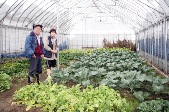 大雪の中、越冬用野菜が育つ育苗ハウス=高柳落合集落 (2011/02/24)