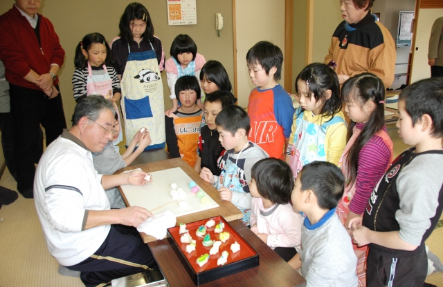 縁起物の「いんころ」作りを楽しんだ参加者=市内米山コミセン (2011/02/09)