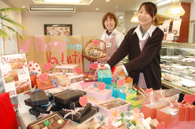 バレンタインデーを前に、ホットな商戦を繰り広げる菓子店の店頭=市内穂波町 (2011/02/10)