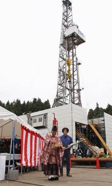 工科大構内で原子力耐震・構造研究センター完成を前に3千メートル級の掘削の安全祈願 (2010/11/22)