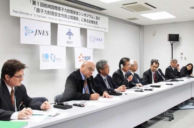 柏崎で開かれた国際シンポジウムの意義などを語る国内外の研究者=新潟工科大 (2010/11/27)