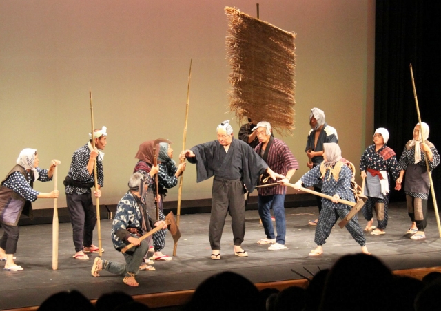 「天明義民伝」再演で熱演を繰り広げる西山かたくり一座=28日、西山ふるさと館 (2010/11/29)