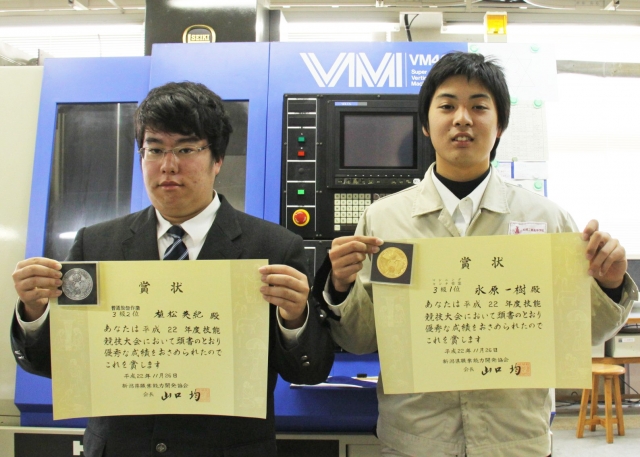 県職業能力開発協会の賞状などを手に県1位の柏工・永原君(右)と2位の同・植松君 (2010/12/01)