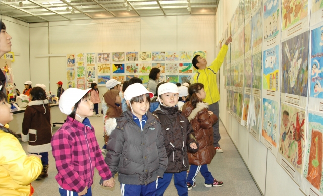 柏崎刈羽の小・中学生の力作がずらりと並んだ美術展=2日午前、ソフィアセンター (2010/12/02)
