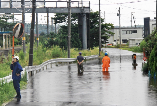 JR刈羽駅近くの冠水した村道。最深時は水が70センチほどあったという=12日 (2010/09/13)