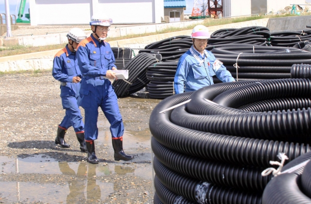 東京電力柏崎刈羽原発で屋外の可燃物置き場の立ち入り検査をする市消防本部 (2010/09/14)