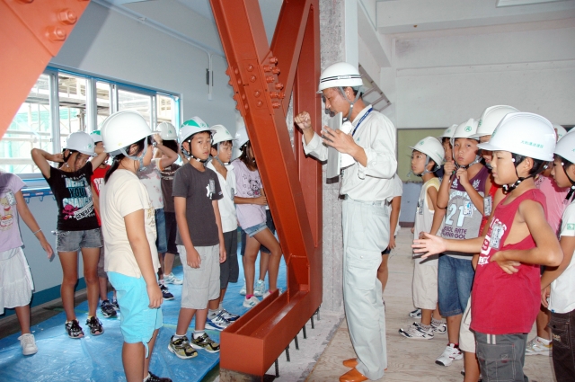 耐震補強工事の進む荒浜小で児童を対象に行われた現場見学会 (2010/09/03)