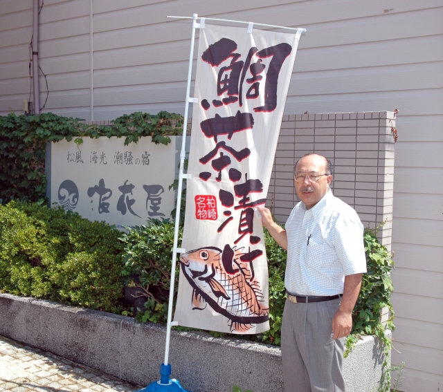 「鯛(たい)茶漬け」をPRするのぼり。提供の市内20店に据え付けられた (2010/09/04)