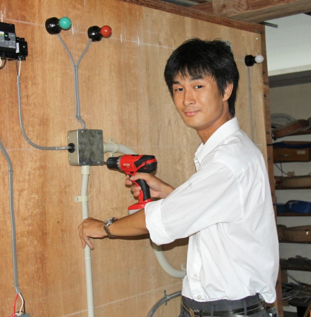 高校生ものづくりコンテスト電気工事部門で北信越1位の山後君=柏工 (2010/09/08)