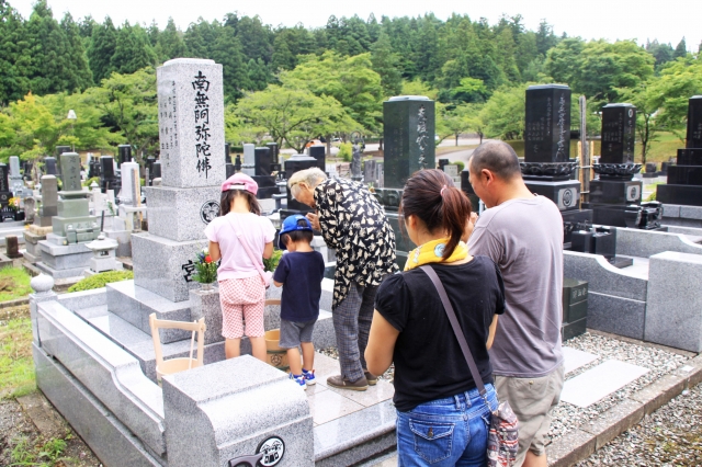 朝から墓参の家族連れなどが訪れる市内堀の柏崎墓園 (2010/08/13)
