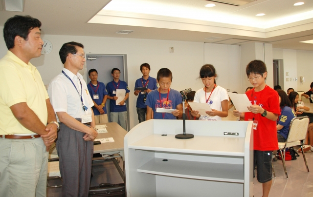 なぎさ体験塾で宣誓を行う柏崎、東村山、小平市の小学生=シーユース雷音 (2010/08/18)