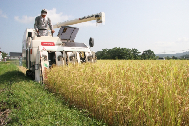 柏崎刈羽のトップを切って、早期越路早生の収穫を始めた田村文夫さん=市内上藤井 (2010/08/20)