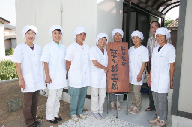 「にしなか菜々彩工房」の女性スタッフ7人と、刈羽節成きゅうりの会の中村会長 (2010/08/21)
