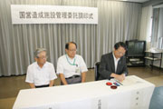 栃ケ原ダムなどの管理委託協定書への調印式=30日、市役所大会議室 (2010/07/30)