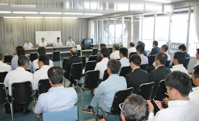新市民会館の建設工事に向け、入札開始を待つ事業者=市役所大会議室 (2010/08/04)