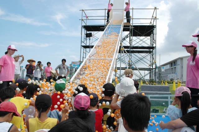 ジュニアサイエンスで1万個のピンポン球を使った「雪崩」実験=みなとまち海浜公園 (2010/08/07)