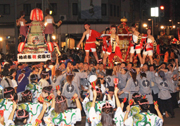 市民の心意気をアピールした「たる仁和賀」。威勢のよいもみ合い=25日夜 (2010/07/26)