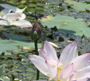 ハスのつぼみにとまるチョウトンボ=28日、市内西山町五日市の大池 (2010/07/29)