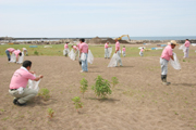 東の輪海岸でごみを拾い集める県建設業協会柏崎支部の人たち (2010/06/26)
