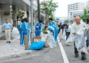一中生徒会の呼び掛けで行われた「えんま市清掃」=17日午前5時半前、市内東本町1 (2010/06/17)
