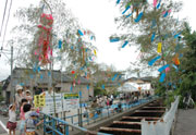 町内のシンボル・よしやぶ川沿いの500メートルに飾られた「七夕飾り」=20日、市内松美地内 (2010/06/21)