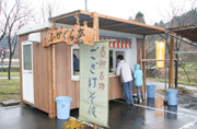高柳産のそばを味わって――と「結の百姓グループ」が開店した仮店舗 (2010/05/01)