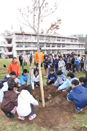 上米山小との統合を記念し、鯨波小で行われた植樹=14日 (2010/04/15)