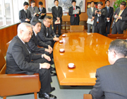山田副市長(右)に柏崎刈羽原発1号機の運転再開を申し入れる東京電力=16日午前、市役所 (2010/04/16)