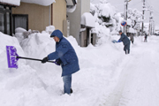 連日の降雪で、雪掘りに精を出す市民=15日午前、市内比角1地内 (2010/01/15)