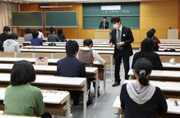 大学入試センター試験開始前、写真票にシールを張る受験生=16日午前、新潟工科大 (2010/01/16)