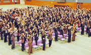 第2次成人式で元気に万歳三唱を行う出席者=市総合体育館 (2009/10/28)