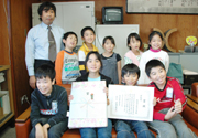 生物標本・自然科学写真展示会で学校賞を受けた大洲小の児童ら (2009/10/30)