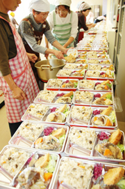 山古志名物の「ふっカツ」が入った弁当=23日、中央地区コミセン (2009/10/23)