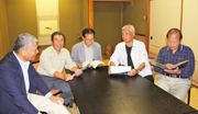 久しぶりに顔を合わせた45年前の新潟国体ハンドボールのメンバー=市内のニュー新橋 (2009/09/17)