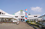 27日から国体卓球競技が行われる市総合体育館。大型テントが設営されて開幕を待つ (2009/09/24)