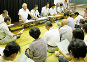 市水道の給水で、刈羽村が開いた説明会=4日、油田地区集会所 (2009/08/06)