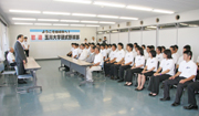13日まで市内で合宿する玉川大硬式野球部。会田市長を訪問した監督、選手=6日、市役所 (2009/08/07)