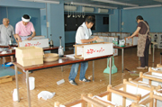 ふるさとまつりの中心イベントの1つである絵あんどんの準備作業=市内西本町1 (2009/08/11)